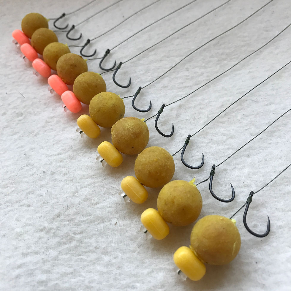 Our hair rigs are tied on a boilie style hook (with the exception of size 12 which are curved). These rigs are fully customisable and you can choose your line type and hook size from the drop down menus when ordering. Our standard rig is approximately 8" long, we can make these shorter for no additional fee; however should you need a longer length, there will be a small surcharge. Please use the Contact Us page to let us know prior to ordering.